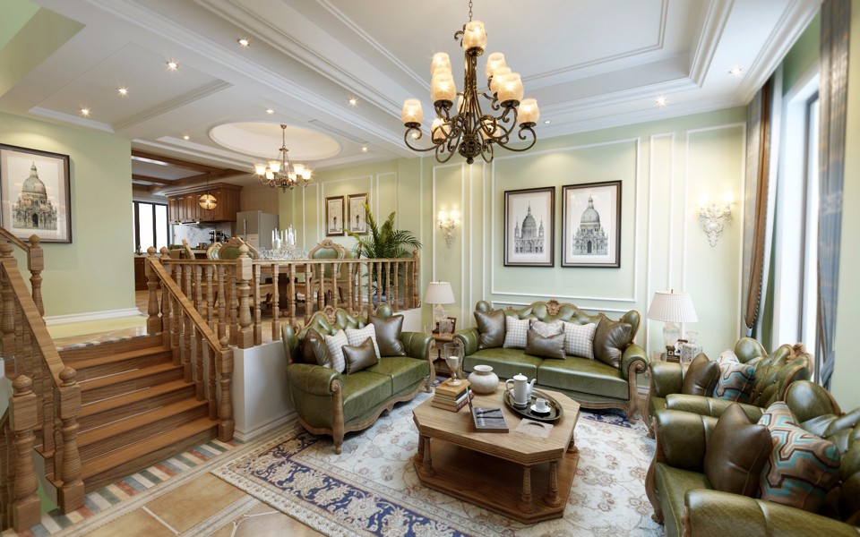 【華新山水居】美式躍層客餐廳效果圖